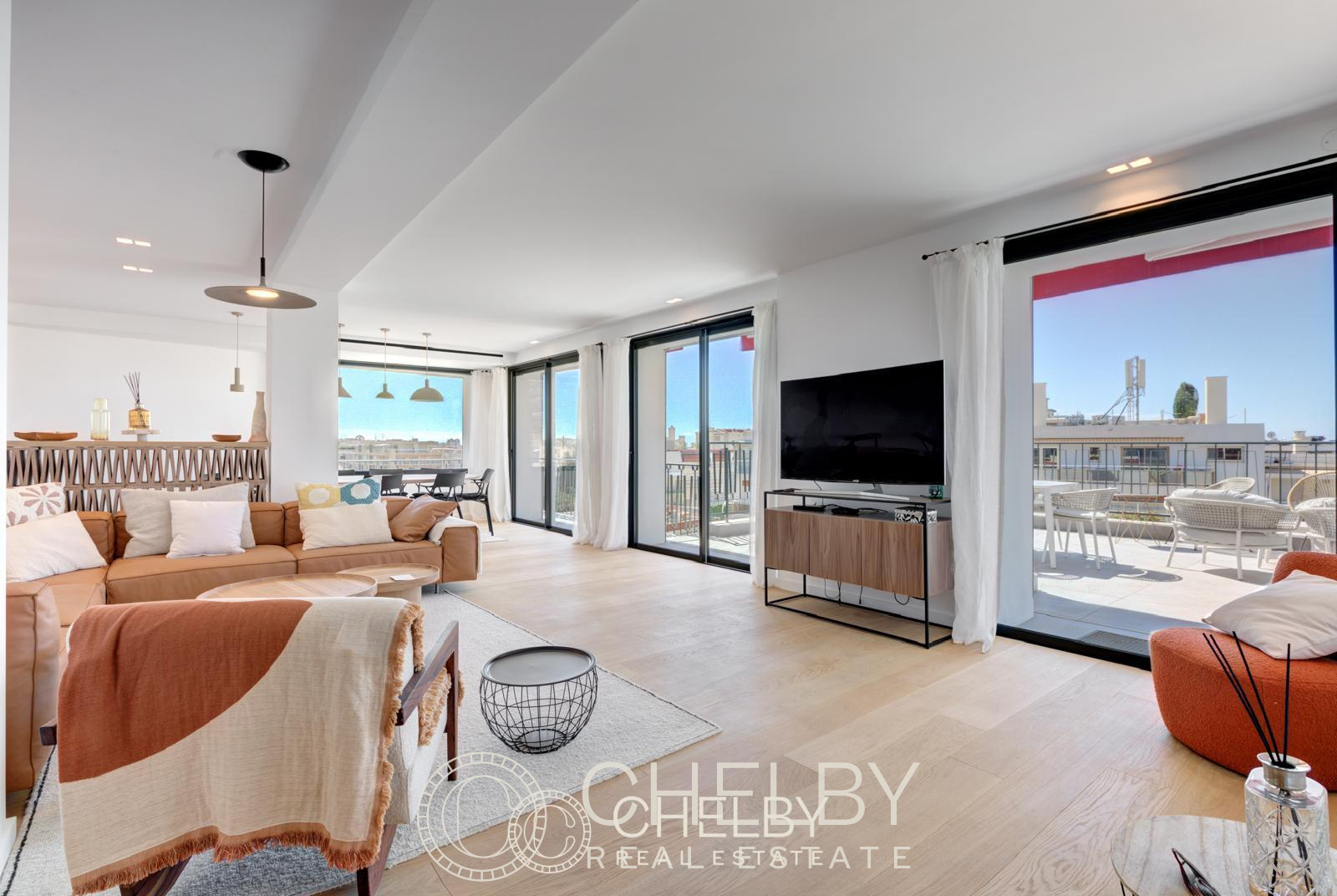Ce penthouse de 150 m², avec une terrasse de plus de 40 m², offre des espaces intérieurs lumineux et ouverts :