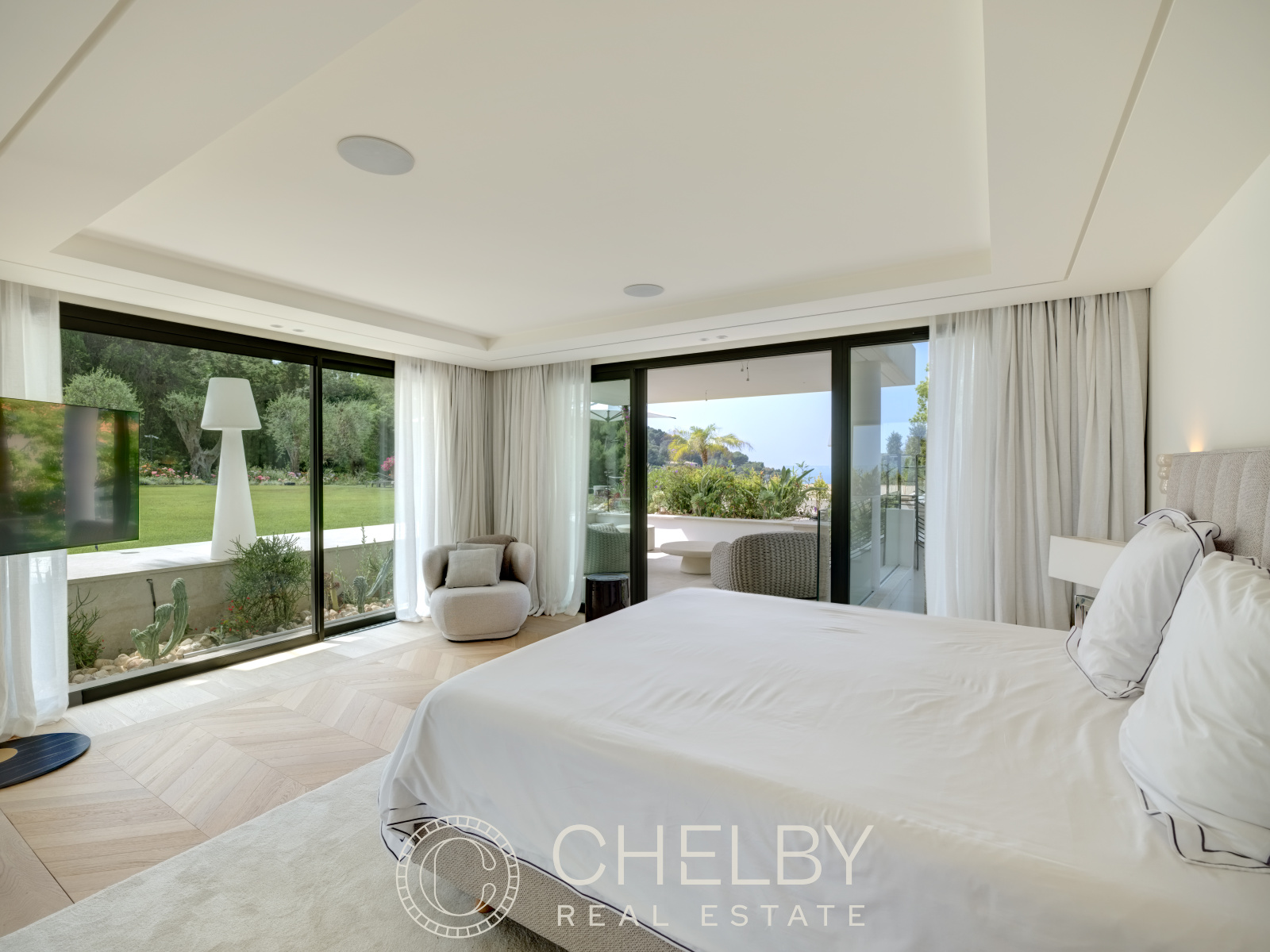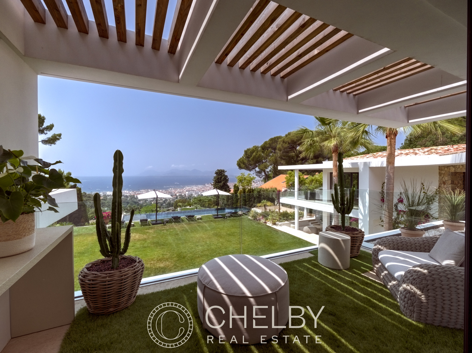 Nichée dans le quartier prisé de la Californie, cette villa d'exception, entièrement rénovée, offre une vue panoramique imprenable sur la baie de Cannes et le massif de l'Estérel. Spacieuse et moderne, elle s'étend sur 660 m² et comprend 5 chambres en suite, dont deux vastes suites, un bureau, un salon lumineux ouvert sur des terrasses face à la mer, et un jardin paysager avec une piscine à débordement.