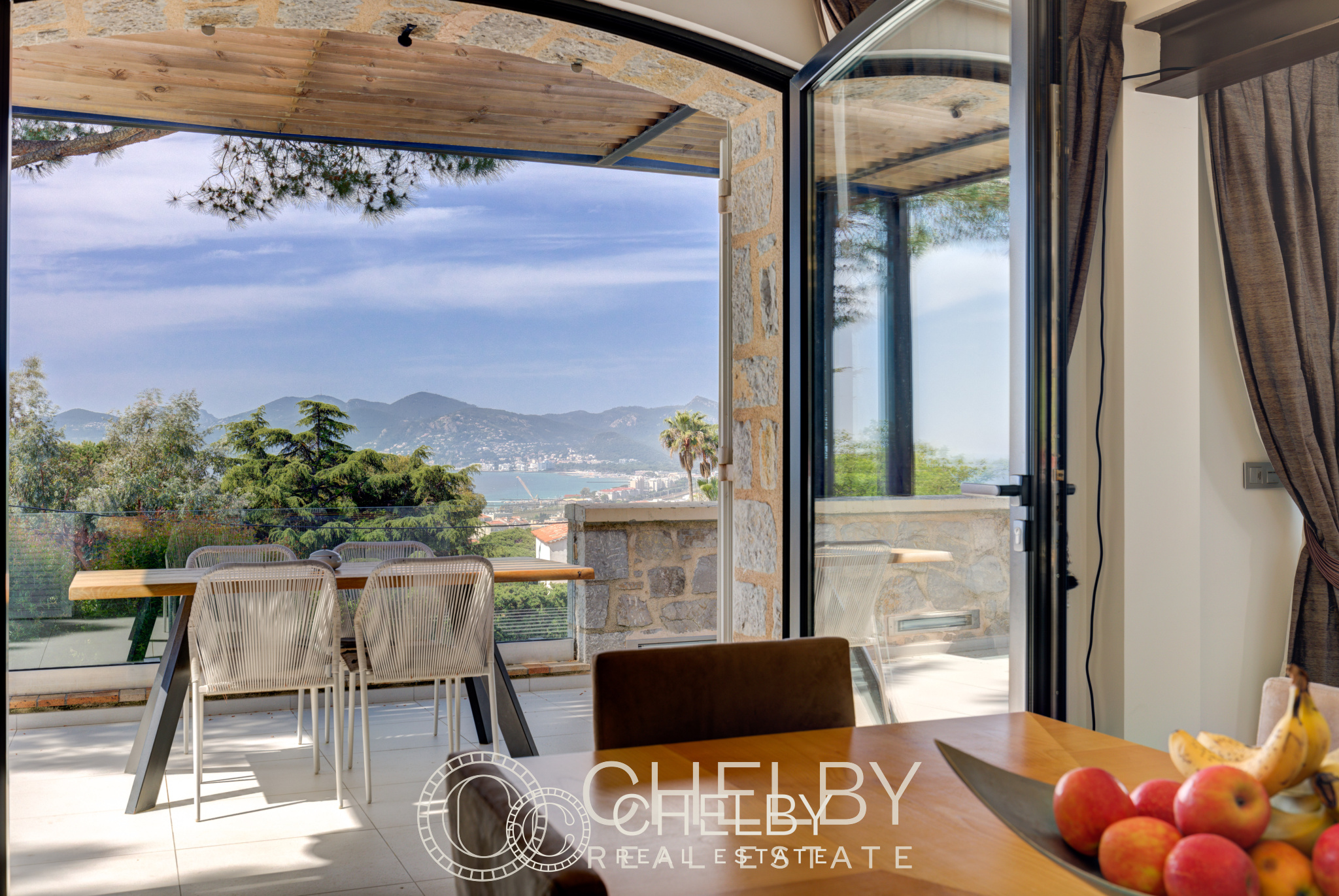 Ouvert sur une grande terrasse idéale pour recevoir. Profitez de votre table extérieure pour des repas en plein air, avec une vue panoramique sur la mer.