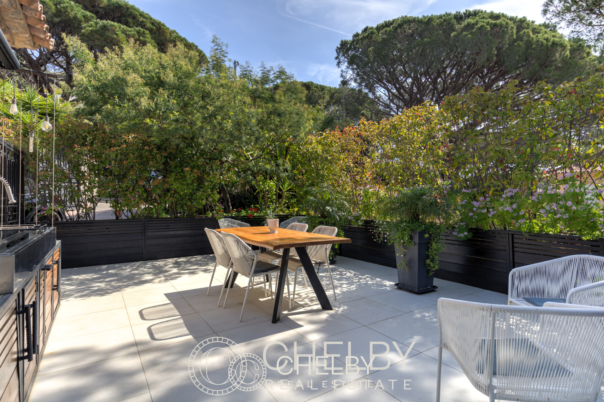 Une cuisine haut de gamme avec terrasse supplémentaire et barbecue pour des moments conviviaux.