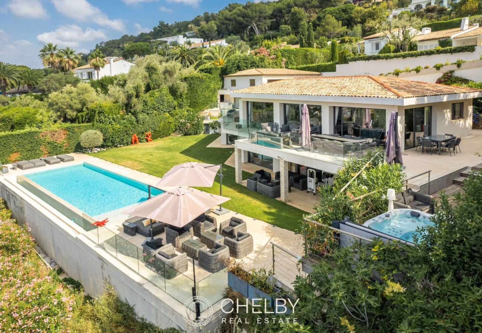 L’extérieur de la villa est conçu pour offrir une expérience de luxe totale :