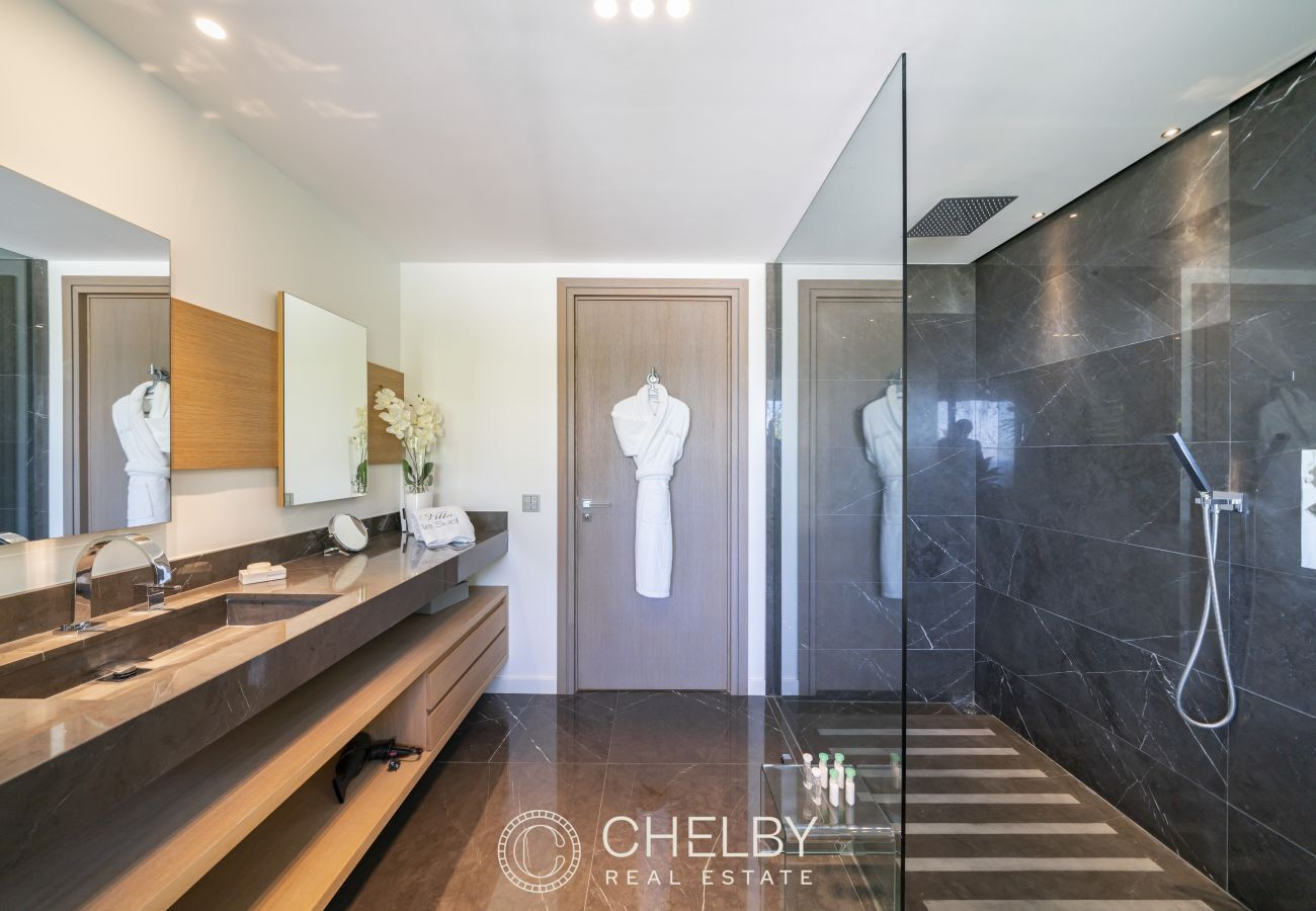 La villa comprend également un appartement de service indépendant, avec un salon-cuisine, une chambre et une salle de bain, parfait pour le personnel ou pour offrir une intimité supplémentaire à vos invités.